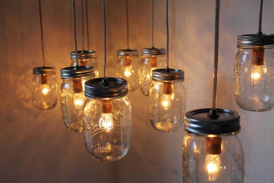 - Závesné lampy s LED žiarovkami vo vnútri pohárov.
